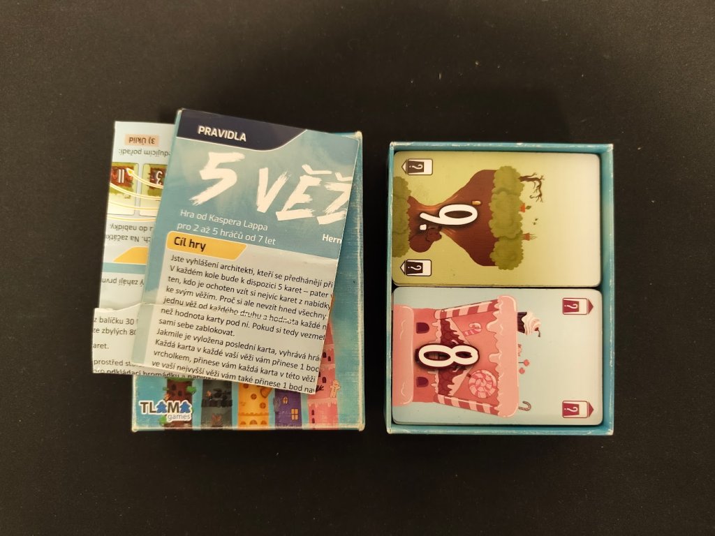 5 věží je zábavná karetní hra, ve které jde především o chytré plánování a o to, abyste nikdy nespustili oči ze svých spoluhráčů. Kasper Lapp, známý svými inovativními karetními hrami opět trefil hřebíček na hlavičku s překvapivou hloubkou, která se rozvíjí až v průběhu hry. Na každé kartě najdete unikátní ilustrace od Anniky Hellerové plné filmových a herních narážek, které vnášejí do hry novou zábavnou rovinu. Poznáte je všechny?
