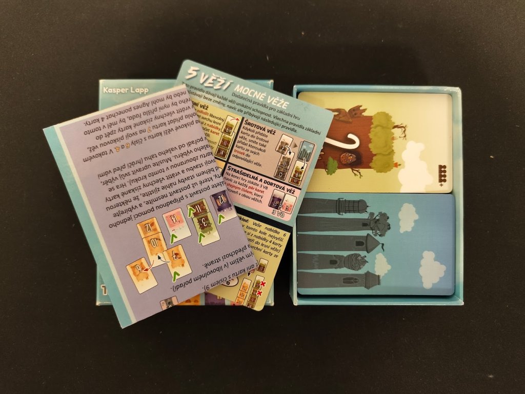 5 věží je zábavná karetní hra, ve které jde především o chytré plánování a o to, abyste nikdy nespustili oči ze svých spoluhráčů. Kasper Lapp, známý svými inovativními karetními hrami opět trefil hřebíček na hlavičku s překvapivou hloubkou, která se rozvíjí až v průběhu hry. Na každé kartě najdete unikátní ilustrace od Anniky Hellerové plné filmových a herních narážek, které vnášejí do hry novou zábavnou rovinu. Poznáte je všechny?