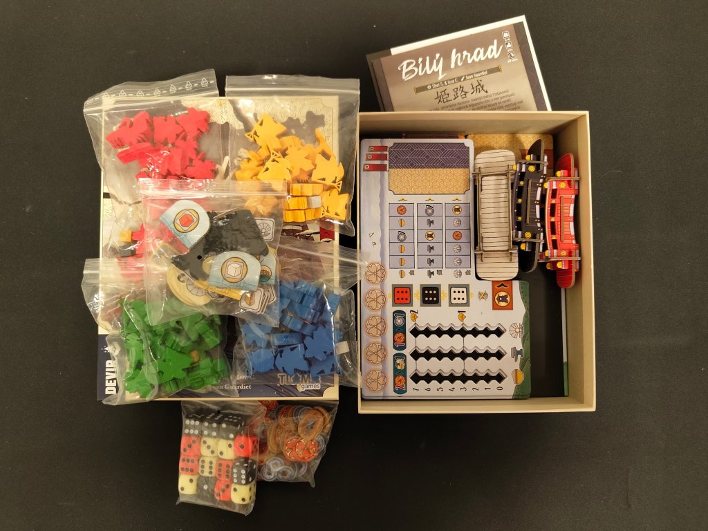 Ve hře Bílý hrad se stanete vůdcem jednoho z těchto drobných klanů a budete usilovat o co největší bodový zisk. Spravujte moudře své zdroje a posílejte své služebníky na správná místa ve správný čas. Jen tak získáte na dvoře větší vliv než ostatní.