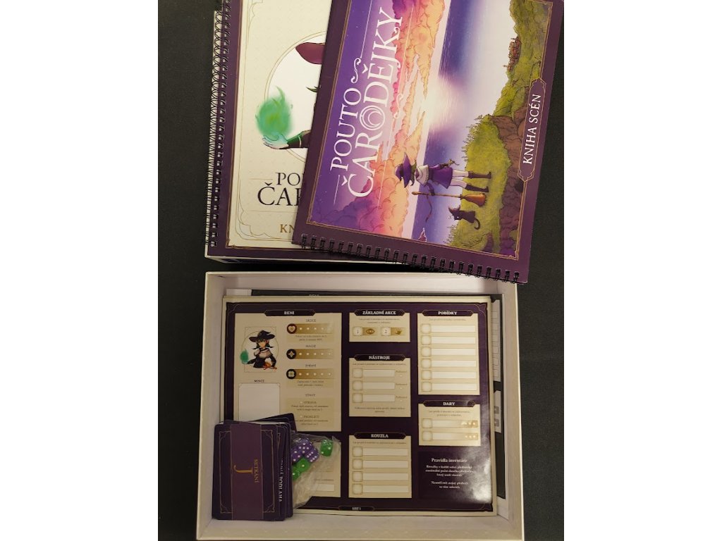 V balení najdete dvě knihy: knihu příběhu a knihu scén. Dále další komponenty potřebné k hraní a pravidla.