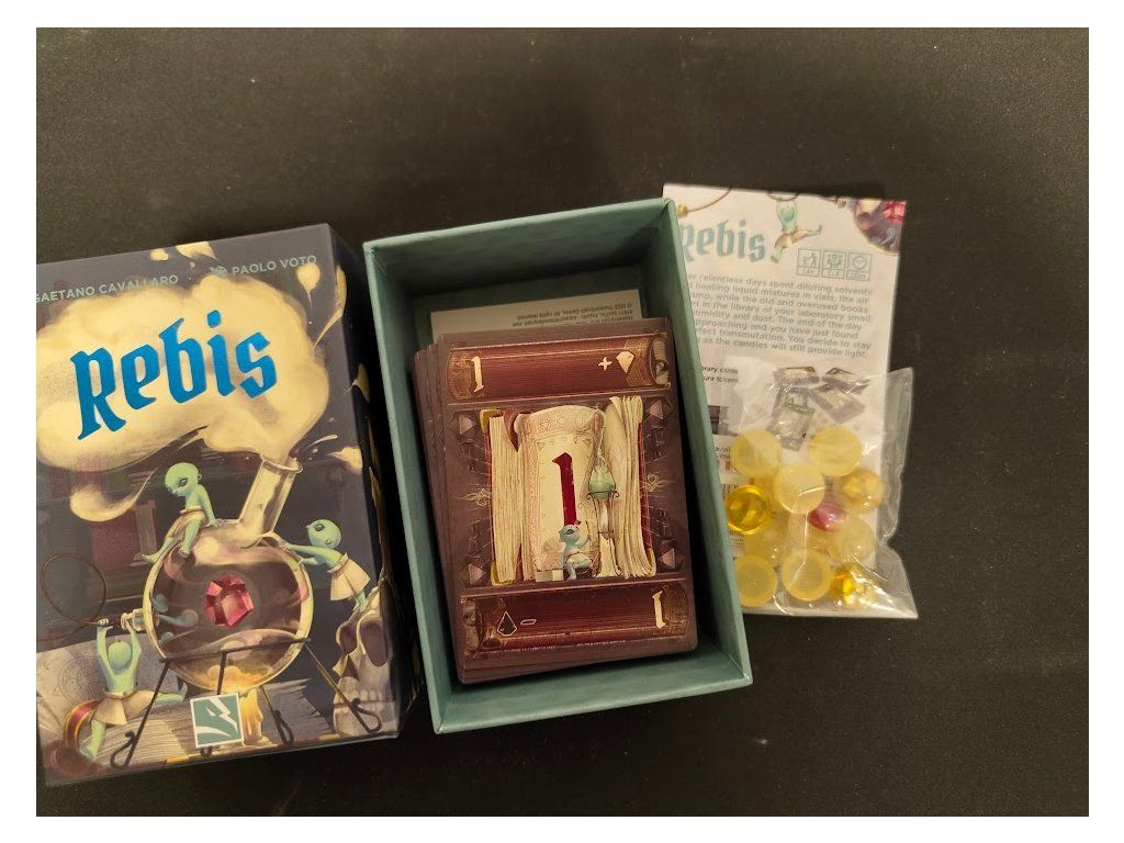Ve hře Rebis si hráči střídavě tahají kartu z balíčku knihovny a hrají karty buď na svou vlastní polici, nebo na polici jiného hráče, přičemž skládají karty z knihovny do hromádky o maximálním počtu 13 karet, aby získali vítězné body.