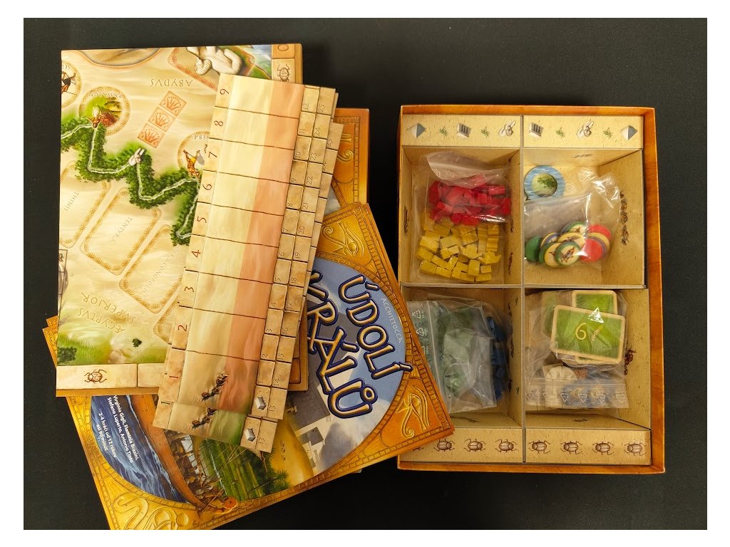 - Příprava dalšího kola: na konci kola se změní pořadí - hraje se odzadu podle pořadí ve skóre - a rozloží se nové karty Nilu.