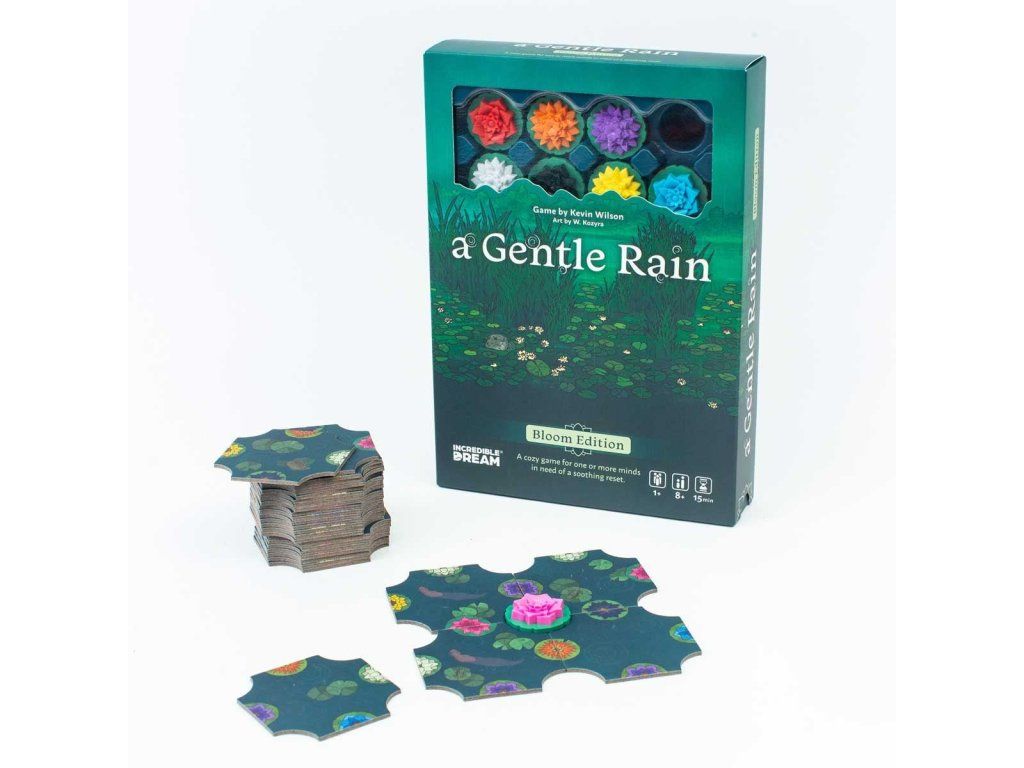 Přišel jsi k jezeru v naději, že uvidíš vzácný a nádherný pohled. Lekníny na jezeře rozvírají své květy pouze za deště a jen málokdy rozkvetou všech osm druhů najednou. Cílem hry A Gentle Rain je rozložit dlaždice s jezerem tak, aby všech osm druhů leknínů rozkvetlo dříve, než ti dojdou dlaždice a déšť ustane.
