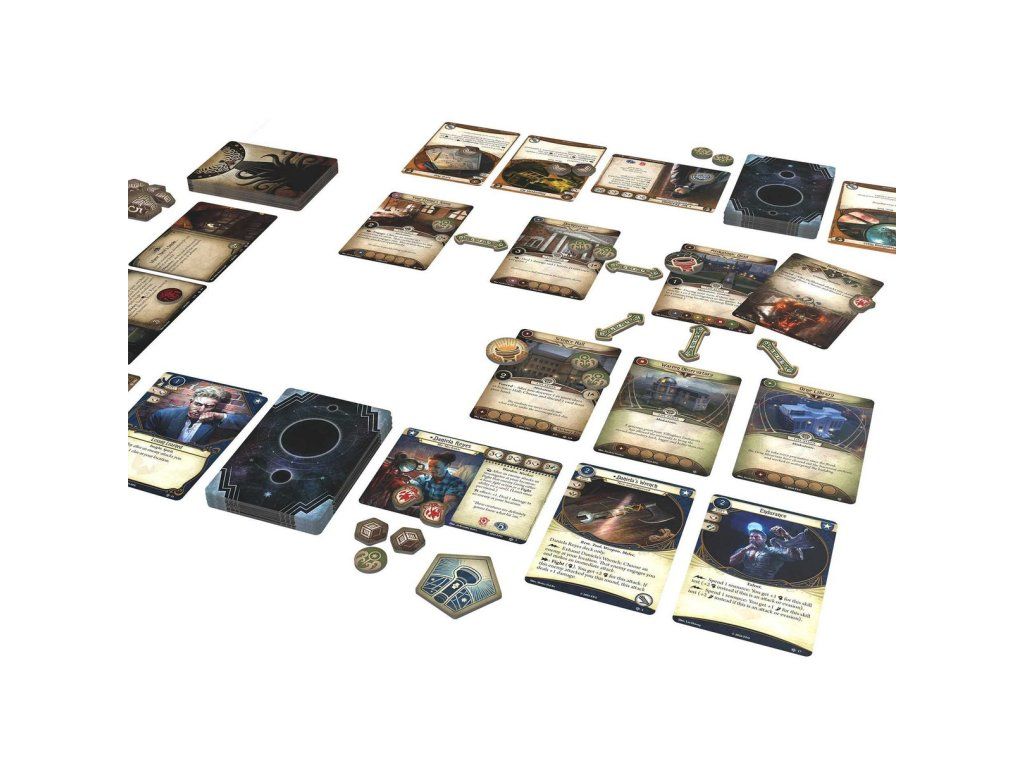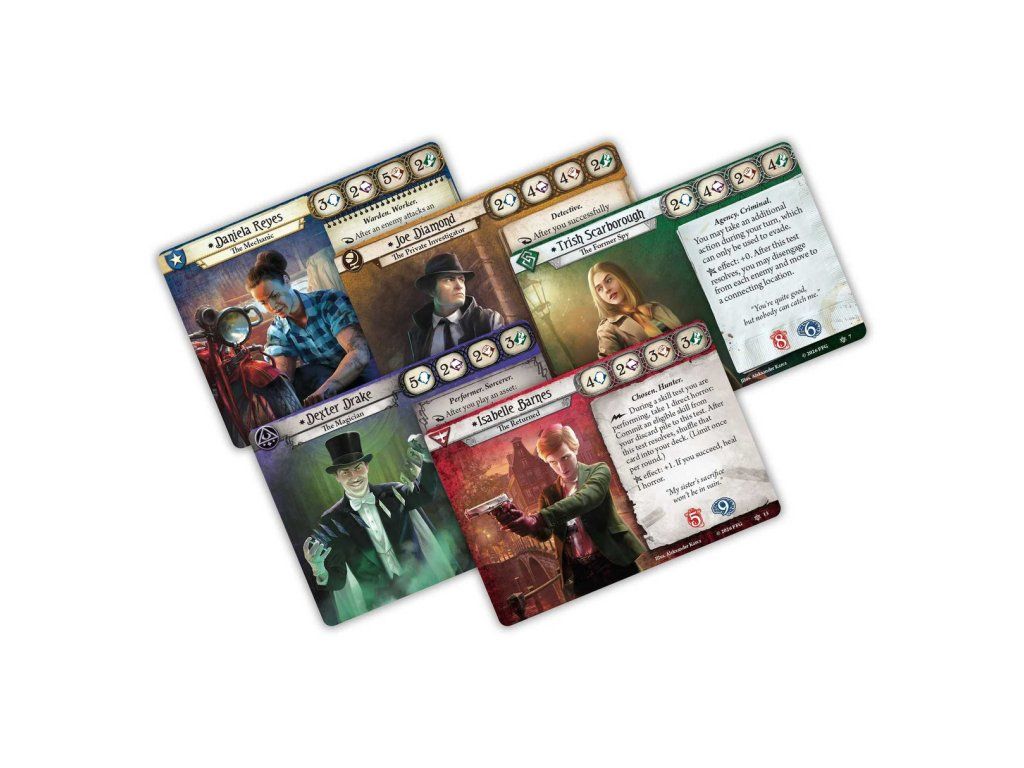 - Váš balíček je vaší postavou. Každý vyšetřovatel má předem sestavený balíček, který reprezentuje jeho schopnosti, silné a slabé stránky.