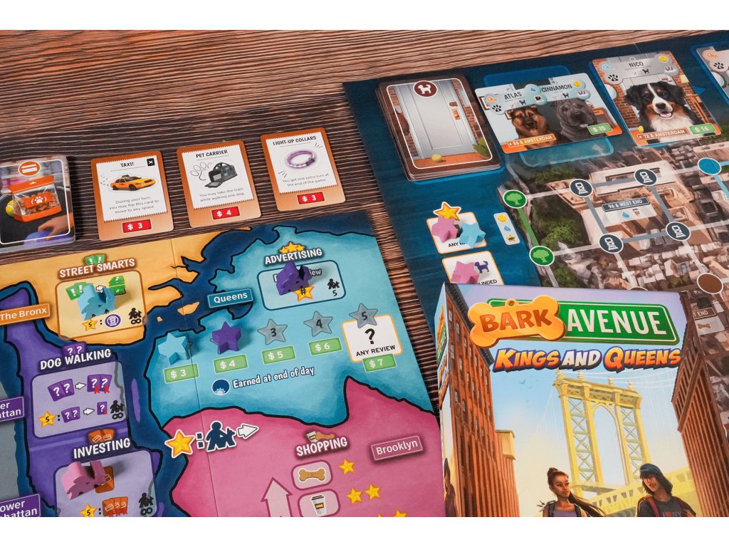 Nová MAPA ČTVRTI je mechanismus pro sbírání bonusů za umístění pracovníků, kde pošlete svého pomocníka do čtvrtí New Yorku, aby soutěžil s ostatními hráči o bonusy, trénink v psím denním táboře a nové vybavení – nové KARTY PŘEDMĚTŮ vám dávají jednorázové nebo trvalé efekty, které ostatní hráči nemají, a poskytují vám tak asymetrické schopnosti.