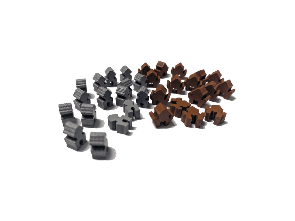 Dřevěné žetony strojů do hry Barrage/Přehrada.