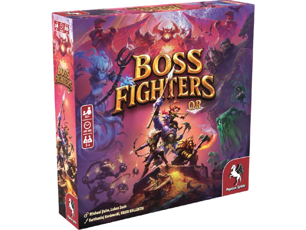 Boss Fighters QR je kooperativní fantasy kampaňová hra, ve které hráči bojují proti deseti jedinečným bossům, kteří takticky reagují na jejich akce. Tato hybridní hra kombinuje prvky klasické karetní hry s digitální aplikací a vytváří tak souhru strategického budování balíčku a dynamických soubojů s bossy. Mechanika Scan&Play hry Boss Fighters QR umožňuje hře okamžitě rozpoznat karty hráčů při jejich naskenování, což pak v reálném čase spouští náročné reakce na volby hráčů.