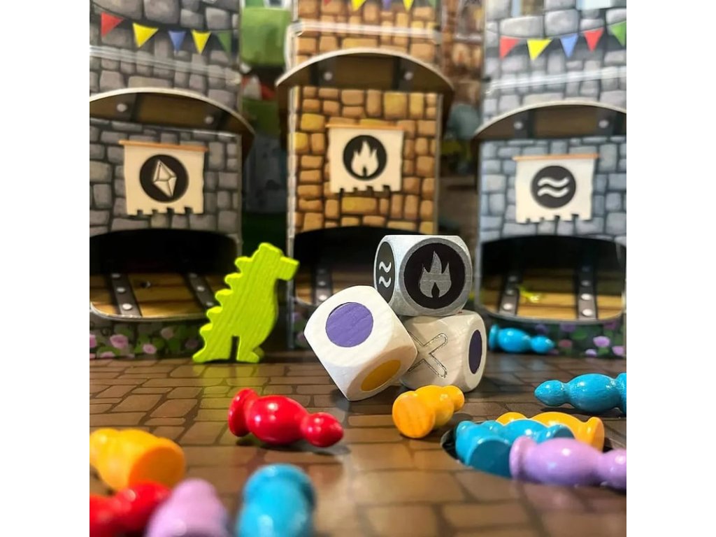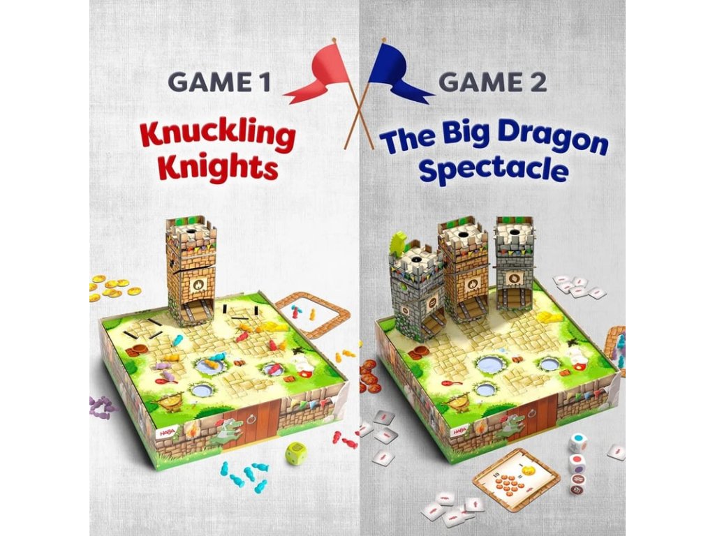 Dvě rytířské hry pro 2–4 dračí pomocníky od 4 let. Délka jedné hry je přibližně 10–15 minut. Na Dračí hradě panuje vzrušení – vrací se Velký dračí souboj! Dračí rytíř pozval všechny na turnaj a nikdo si nechce nechat ujít tuto největší událost roku. Všichni rytíři se v dobré náladě tlačí v hradních věžích a čekají, až se otevřou tajné dveře. Když konečně přijde čas, vyrazí s křikem a smíchem na hradní nádvoří – a doufají, že nespadnou do vodních děr! Kdo se úspěšně prodere davem a nasbírá nejvíce mincí, vítězí.