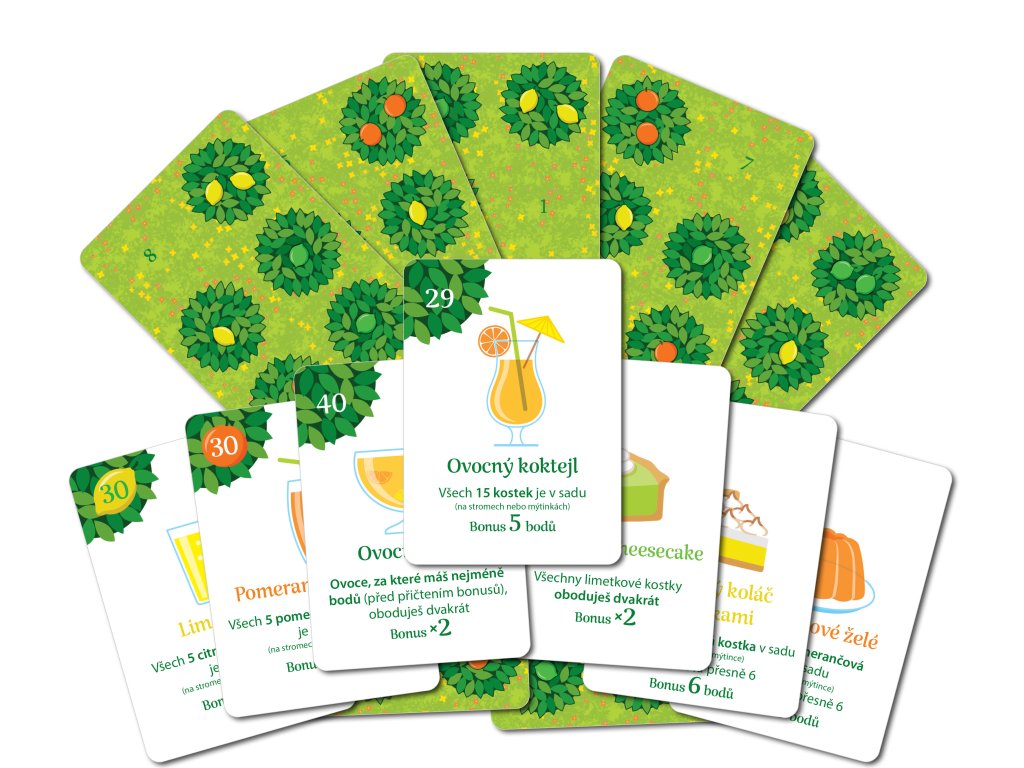 Na rubových stranách karet najdete recepty na citrusové pochoutky, které představují novou výzvu i příležitost, jak získat více bodů. Díky receptům okusíte v každé hře něco nového!