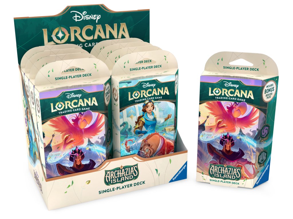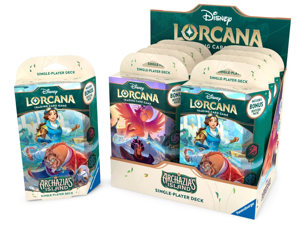 Každý startovací balíček Disney Lorcana obsahuje vše, co hráč potřebuje, aby mohl začít hrát proti jinému hráči, který má svůj vlastní balíček. Díky těmto balíčkům hráči poznají bohatý příběh a rozmanité postavy hry Disney Lorcana. Tento balíček "Smaragd a Rubín" kombinuje přizpůsobivost a lstivost smaragdových postav, které používají svůj důvtip k překvapování protivníků, s akční odvahou...