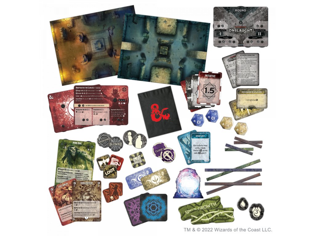 Dungeons & Dragons Onslaught je kompetitivní skirmish hra, ve které každý hráč ovládá družinu dobrodruhů z jedné z mocných frakcí Forgotten Realms. Strany se noří do dungeonů, bojují s konkurenčními dobrodruhy a čelí strašlivým nestvůrám na cestě za pokladem a slávou!
