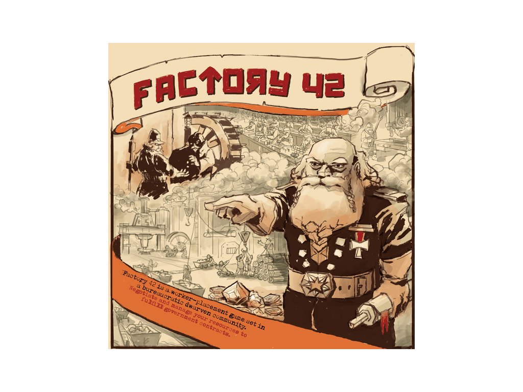 Abyste porazili trpasličí byrokracii, musíte řádně strategizovat, manévrovat a samozřejmě i podfukařit. Factory 42 je semikooperativní worker placement ze světa Zanziaru. 2-4 hráči spolu soupeří coby předáci v trpasličí fabrice, udělují příkazy svým podřízeným a dostávají odměny za splněné vládní zakázky. Celý proces však maří byrokracie - ovlivňuje příjmy a trestá předáky za nesplnění příkazů. Vaše linka musí splnit kvóty, předehnat rivaly, nakoupit lepší výbavu... a to všechno nejde přece dělat poctivě...