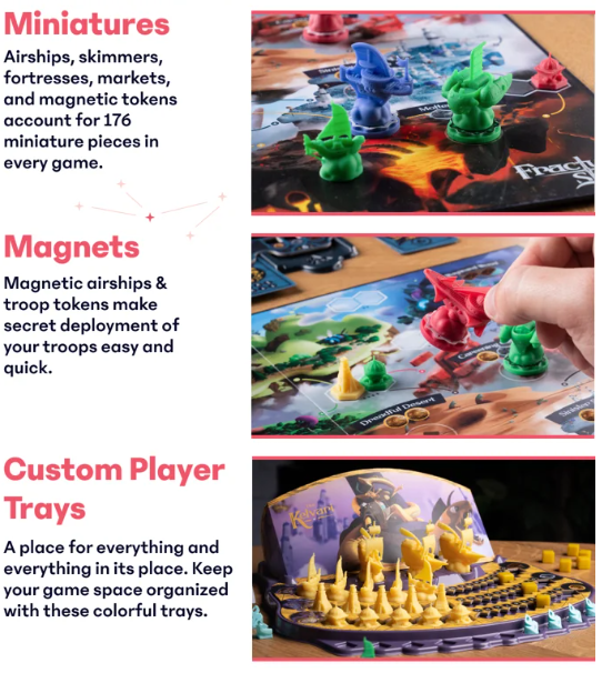 Fractured Sky je hra plná dedukce, lstivé strategie a správy zdrojů, která se odehrává na fantastickém ostrově. Hráči vedou své království v honbě za úlomky padajících roztříštěných hvězd, které prý plní přání těm, kteří jich nashromáždí dostatek.