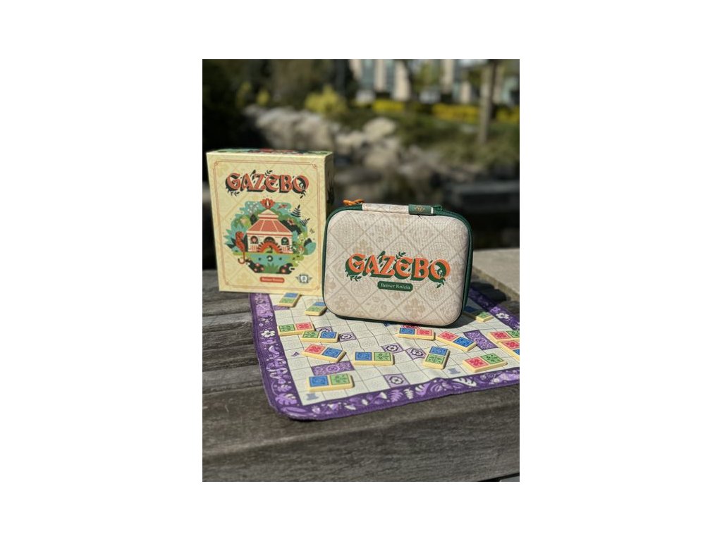Naplňte své botanické zahrady voňavými květinami, bujnou zelení a uklidňující vodou, zatímco stavíte své altány mezi klidnými prvky a na vrcholu cenných teras. Ve hře Gazebo hráči postupně umisťují prvotřídní domino na společnou mapu zahrady, aby vytvořili zahrádky – tedy dva nebo více sousedících terénních prostorů stejného typu: květiny, zeleň nebo voda.