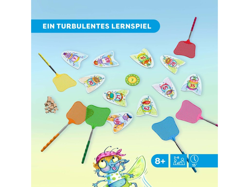 Nejprve spočítejte, pak udeřte na mušku! Kdo jako první chytí mušku se správným číslem? Vzdělávací společenská hra, ve které děti procvičí násobení, soustředění a reakce.