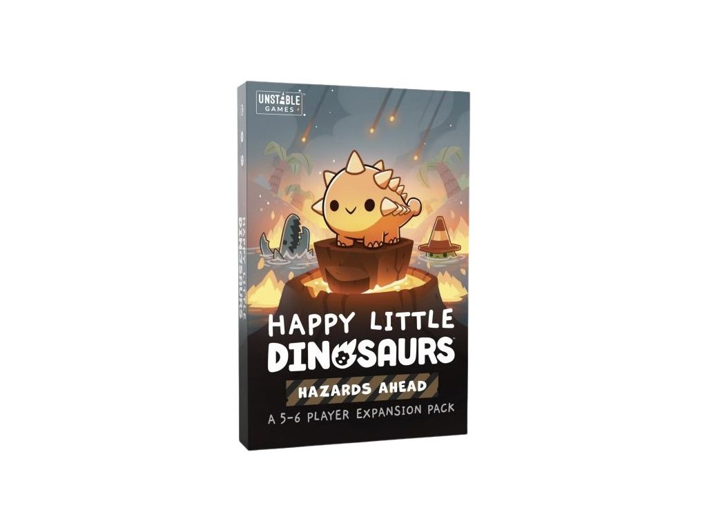 Vezměte si ochrannou čepici - čekají vás nebezpečí! Tento rozšiřující balíček Happy Little Dinosaurs obsahuje 2 nové postavy a 3 nové herní komponenty. Žetony nebezpečí mohou donutit soupeře vzít si kartu nebezpečí a čelit novým neštěstím, zatímco karty šťastných dnů vám pomohou vyhnout se katastrofám. Možná se setkáte tváří v tvář s Yettim nebo se necháte vtáhnout do pyramidové hry.