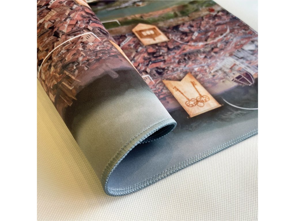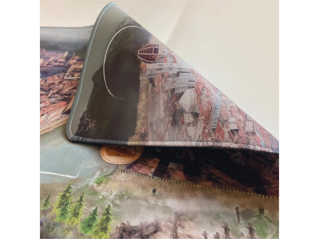 Okraje jsou jemně obšité a rohy mírně zaoblené pro co nejlepší herní zážitek. Design je shodný s herním plánem ze základní se stranou A pro 1/2 hráče a stranou B pro 3/4 hráče.