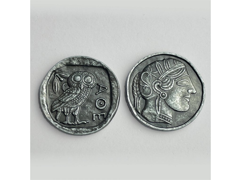 Jejich detailní vzory představují mírně stylizované verze florénů ze 14. století a drachem z 5. století. Jsou silné a obsahují lehkou patinu, která jim dodává vzhled starobylých mincí. Nahrazují kartonové mince, které jsou součástí základní hry Inferno.