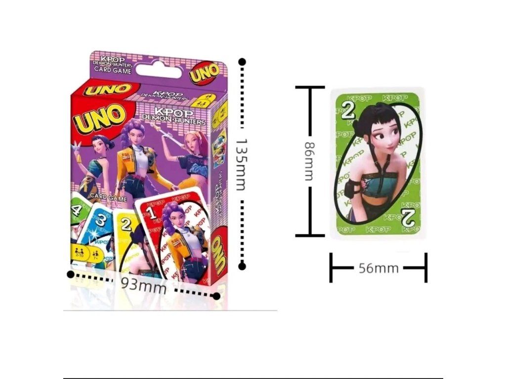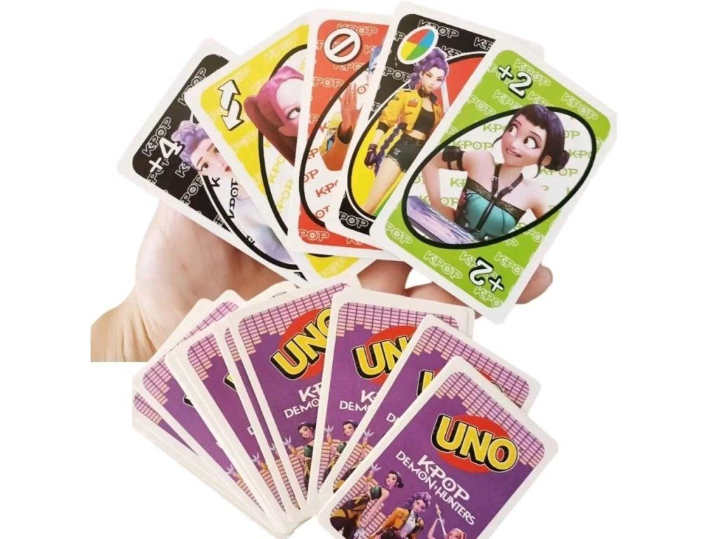 UNO: K‑Pop Demon Hunters je svižná a zábavná varianta klasického UNO, ve které se hráči stávají členy stylové K‑pop skupiny bojující proti démonickým silám. Karty přinášejí nové akční efekty, tematické ilustrace a speciální schopnosti, které mění tempo hry a přidávají dramatické zvraty. Hráči se střídají v odhazování karet podle barvy nebo čísla, využívají speciální tahy a snaží se jako první zbavit celé ruky. Díky dynamickému K‑pop motivu a démonickému lovu je hra ideální pro fanoušky rychlých party her i korejské popkultury. Perfektní volba na večírky, rodinné hraní i sběratelské nadšence.