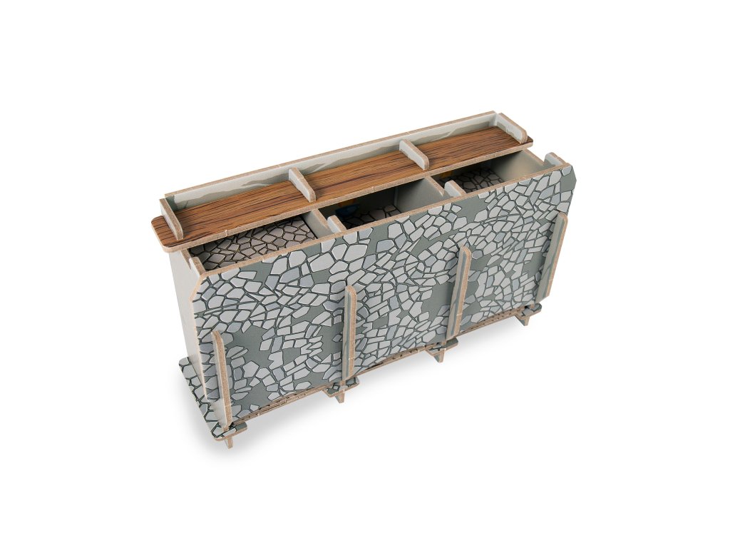 2.vydání hry Karak má novou čtvercovou krabici, plastový insert a kartonovou věž na dílky.