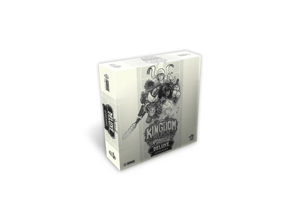 Deluxe Upgrade pro základní hru Kingdom Rush: Elemental Uprising, který přidává úložné přihrádky, organizéry na stůl pro věže a žetony poškození, referenční karty hrdinů a navíc miniatury rytíře a pískového válečníka.