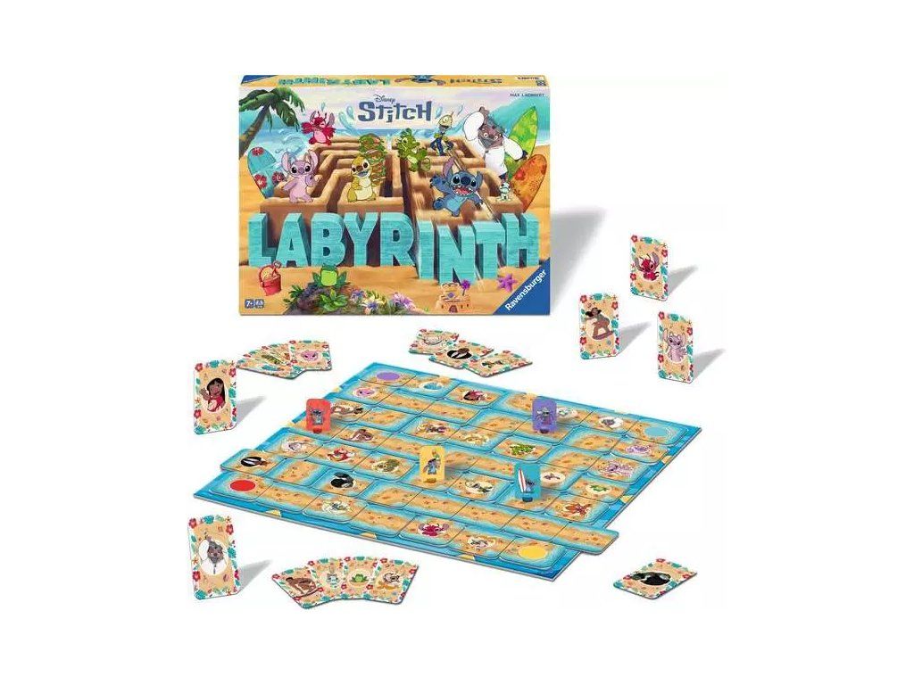 Labyrinth – magická hra s bludištěm. Snadná, ale pokaždé napínavá! Klasická hra oblíbená po celém světě už po několik generací v nové Disney: Stitch. Oblíbené postavičky se světa Disney: Stitch se ztratily v pohyblivém tajemném labyrintu. Dokážete je najít a vysvobodit? Jen ten, kdo najde všechny postavičky ze svého balíčku hracích karet jako první, může vyhrát. Zasuňte dílek s chodbou labyrintu do herní desky na některé z vyznačených míst a posouvejte zdmi a cestami při cestě za kouzelnými Disney postavičkami. Ale pozor na ostatní hráče, ti chtějí zase úplně jinam a mohou vám zablokovat cestu.