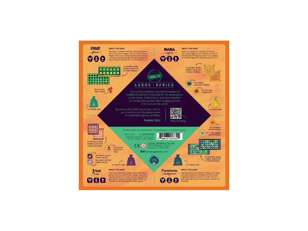 Kolekce LUDOS vznikla s cílem zachovat hry minulosti pro budoucí generace. Druhý svazek, LUDOS Africa, obsahuje čtyři starodávné strategické hry pro dva hráče z Mali (Yoté), Ghany (Oware), Nigérie (Dara) a Madagaskaru (Fanorona). Tento projekt podpořilo více než 2900 přispěvatelů na Kickstarteru.
