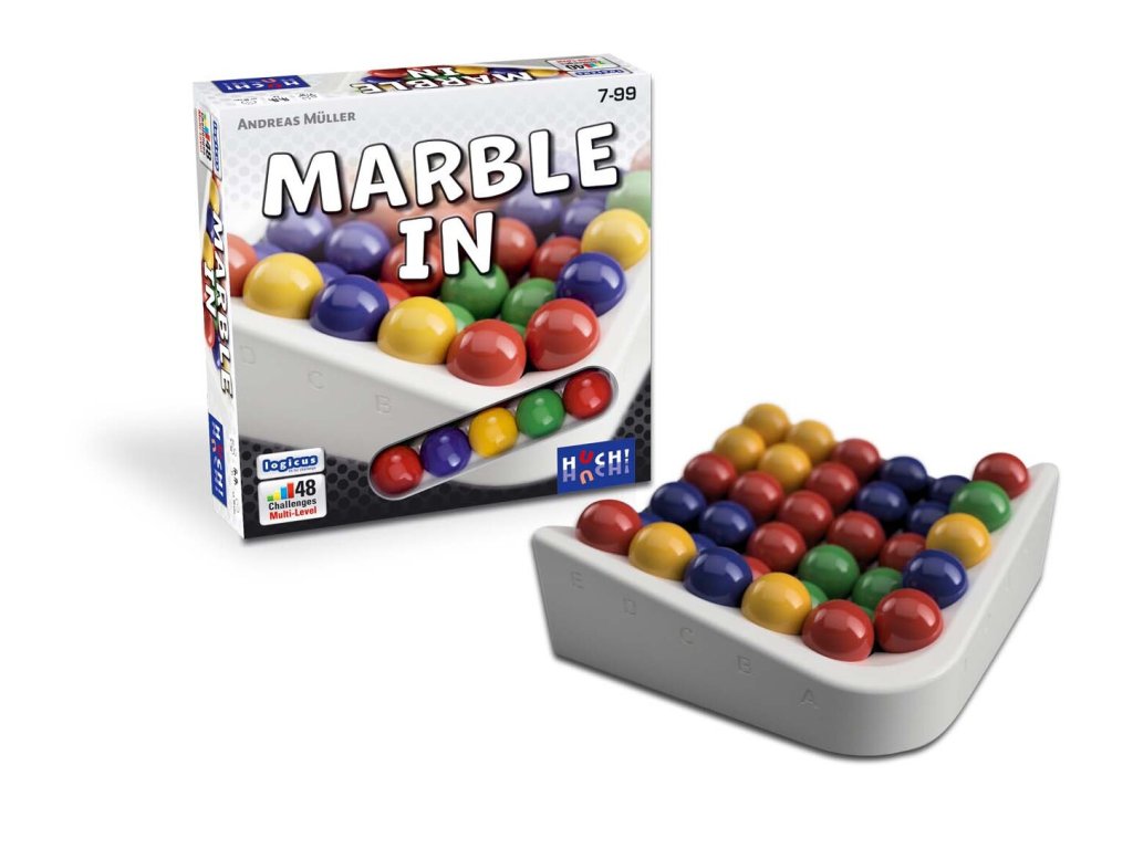 Logická hádanka s kuličkami. Marble In vypadá jednoduše, ale uspořádání kuliček skrývá mnoho triků. Kuličku lze snadno vložit, ale posune vše kolem sebe a to, co se zdálo být správné, se stane vzdálenou vzpomínkou. Je nutné taktické plánování, protože kulička vložená právě teď nemusí dosáhnout svého cíle ještě mnohem později. V této hře je cesta polovinou úspěchu.
