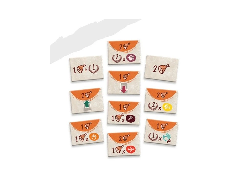 Během hry: Hráč, který jako první vrátí svůj totem na destičku pořadí, si vezme horní dílek jeskyně NAMÍSTO bonusu označeného na destičce pořadí. Bonus z dílku jeskyně můžete
