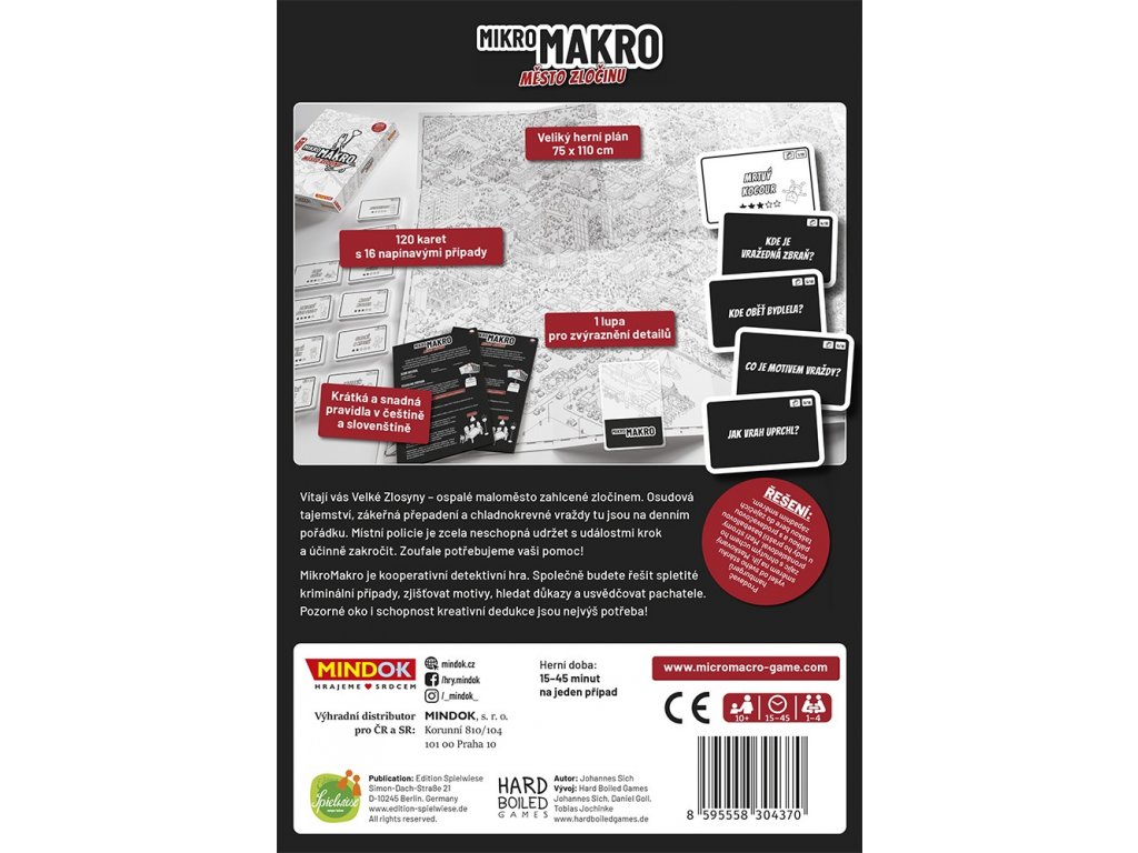 MikroMakro je kooperativní detektivní hra. Společně budete řešit spletité kriminální případy, zjišťovat motivy, hledat důkazy a usvědčovat pachatele. Pozorné oko i schopnost kreativní dedukce jsou nejvýš potřeba!