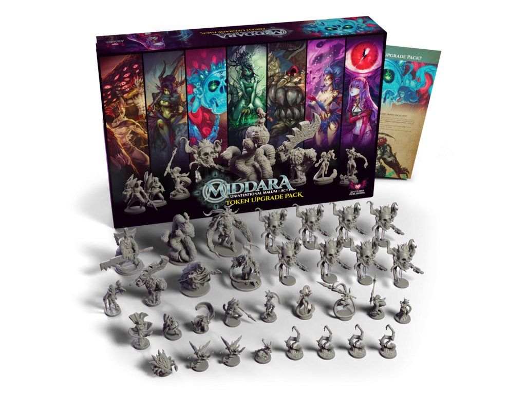 Vylepšete si zážitek ze hry Middara s balíčkem Act 1 Token Upgrade Pack, který nahrazuje mnoho kartonových figurek z původní hry detailními plastovými miniaturami.