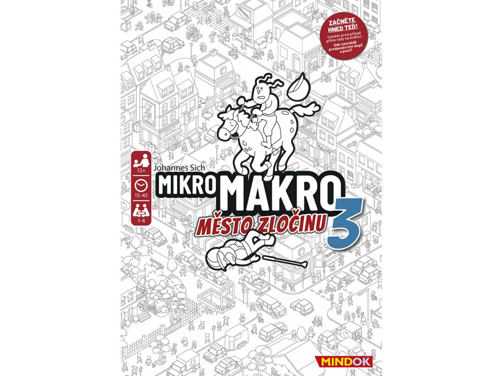 Toto je třetí díl série her mikroMAKRO. Čeká vás v něm nová mapa města a nových 16 případů k vyřešení. mikroMAKRO: Město zločinu 3 je samostatná hra a k řešení 16 případů z této krabice nepotřebujete znát předchozí dva díly.