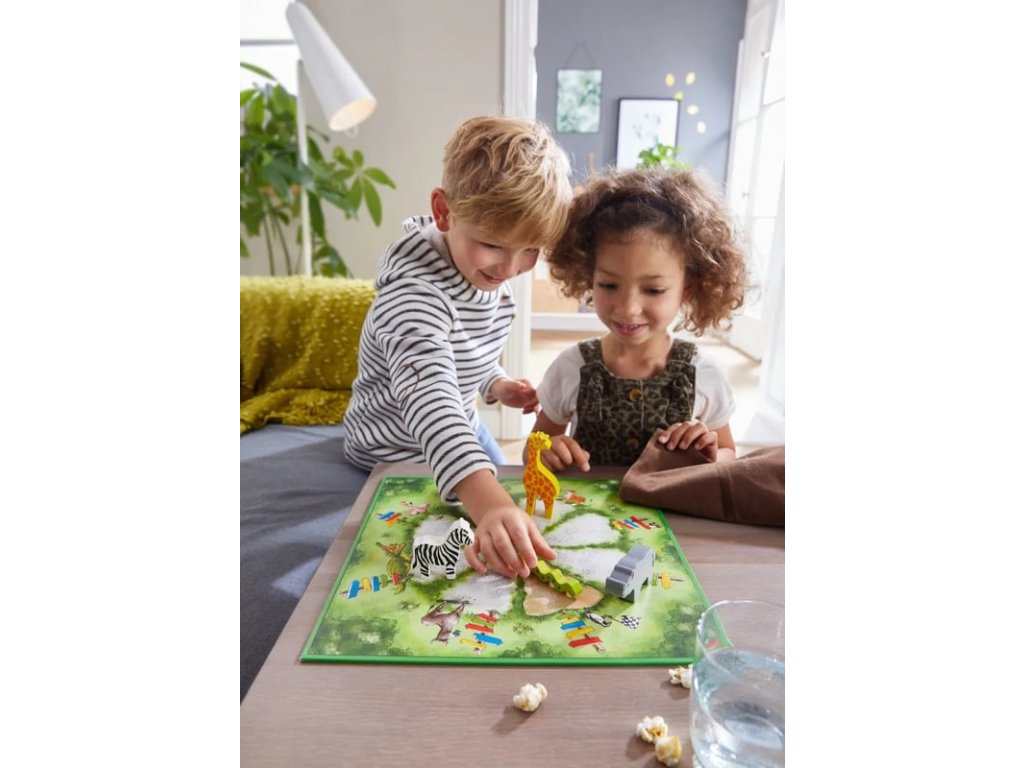 V zoologické zahradě je dnes zmatek! Opice se bláznivě chovají, nenasytný nosorožec pojídá všechno, co mu přijde pod ruku, a chameleoni neustále mění barvy. Díky deseti různým hrám si hráči zlepšují koncentraci, hmat, chápání množství a čísel a také rozpoznávání barev a tvarů.