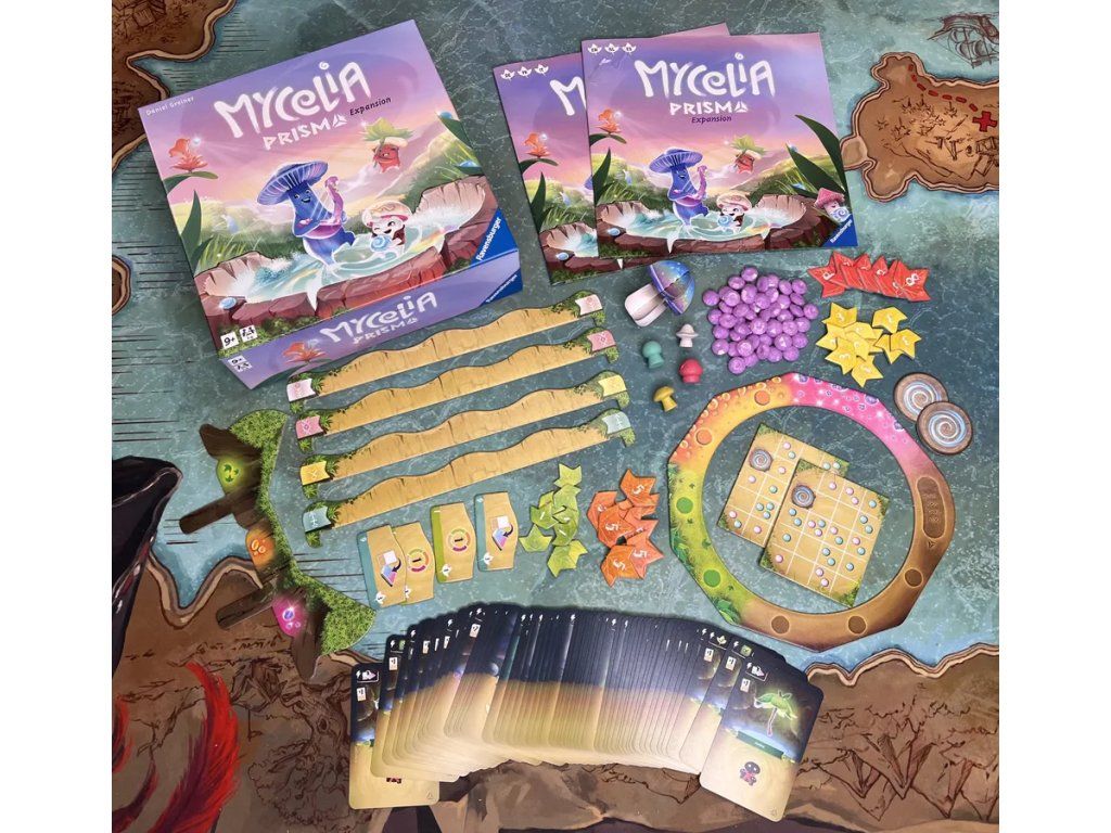 Rozšíření Mycelia: Prisma přináší do kouzelného světa Mycelie nové herní prvky, strategické možnosti a barevné výzvy. Pohybujte se po Stezce přízně, získejte mocné darovací karty Bohyně lesa a odstraňujte nejen kapky rosy, ale i nové duhové kapky. Díky novým mechanismům a kartám získává hra více hloubky, rozmanitosti a znovuhratelnosti. Pro hraní je potřeba základní hra Mycelia.