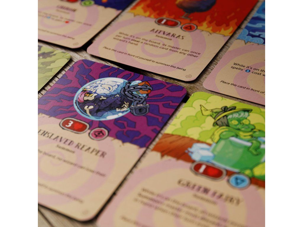 - 55 karet ve velikosti pokerových karet – nová kouzla, přivolání, artefakty, události, identifikační karty čarodějů Institutu pro vás a vaše přátele a prázdné karty pro vytvoření vlastních kouzel