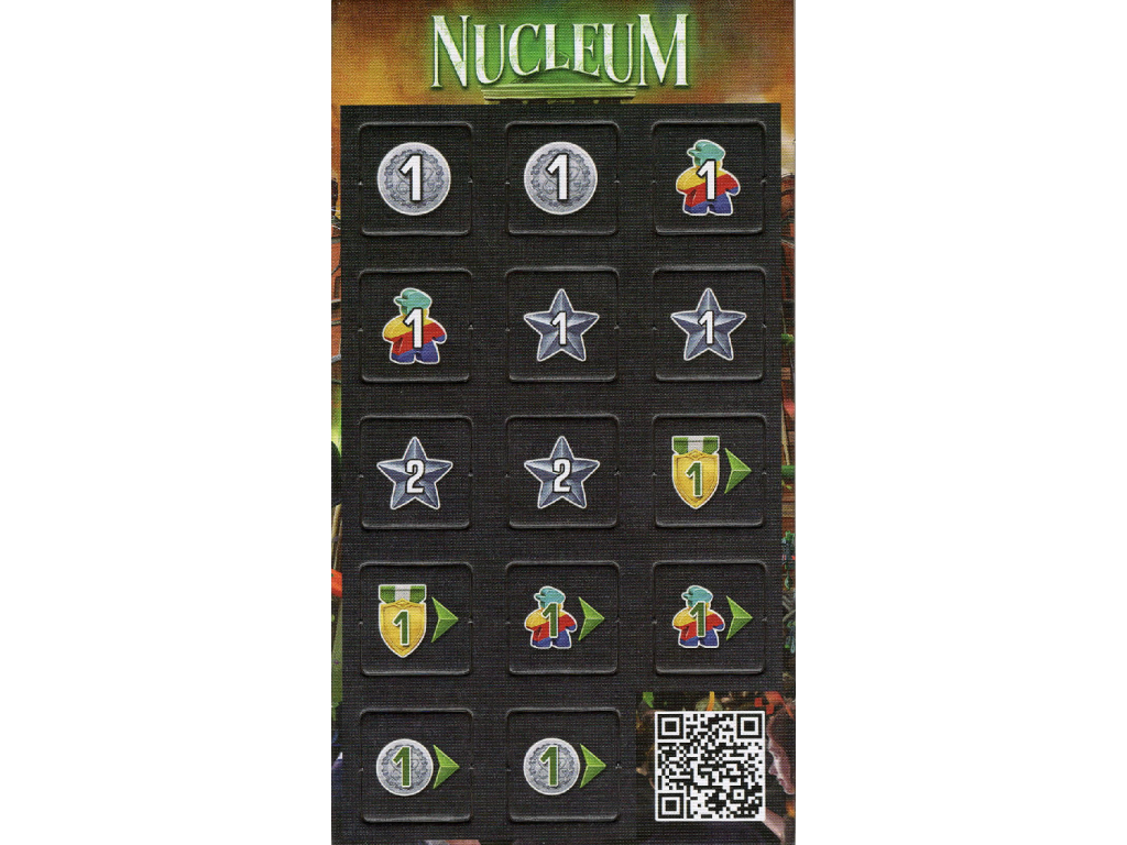 Promo balíček „Nucleum Half Tiles“ je limitované rozšíření, které vám při uzavírání smlouvy přináší nový bonus. Vyberte si bonusové místo, získejte poloviční dlaždici a použijte ji k zakrytí části akční dlaždice – čímž okamžitě změníte svůj další tah. Po spuštění akce vraťte poloviční dlaždici do nabídky k opětovnému použití.