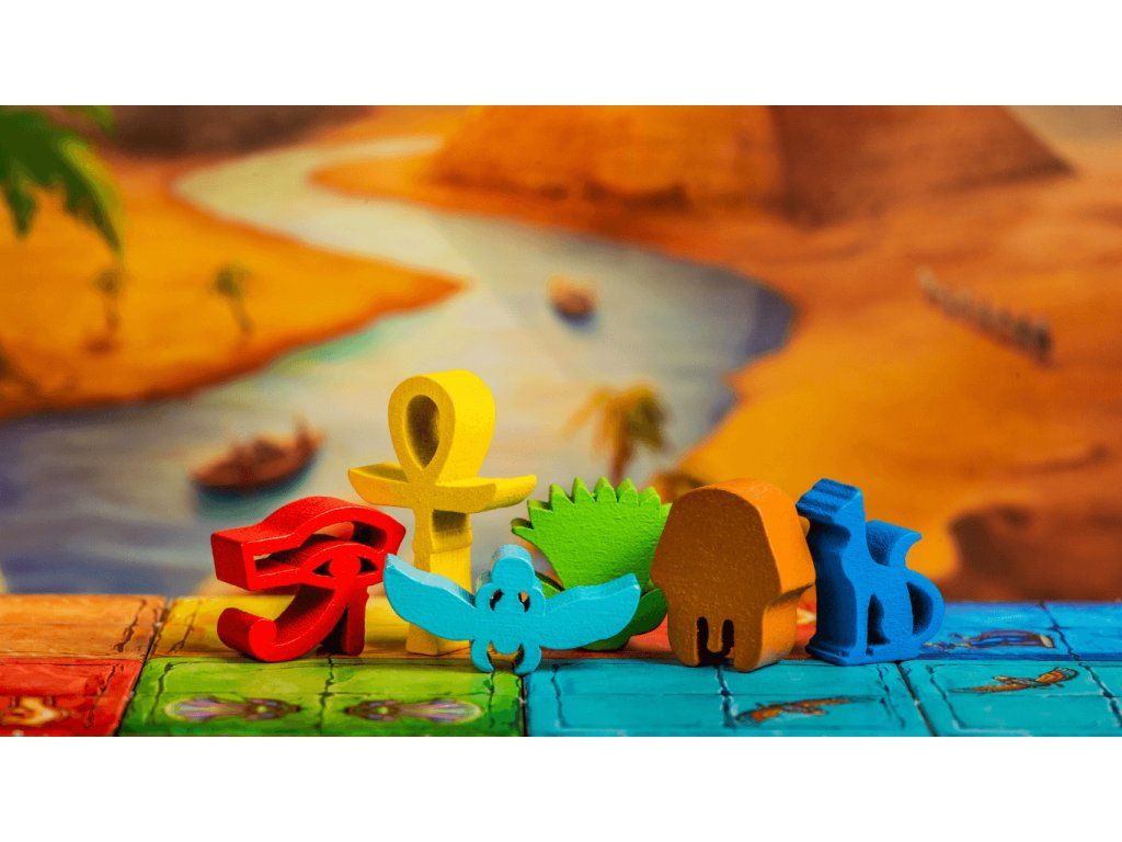 Pomocí dominových dílků postavíte svou vlastní pyramidu. Přikládejte k sobě dílky se stejným typem drahokamů, abyste potěšili faraona a abyste během stavby 4 stupňů pyramidy dosáhli nejvyššího počtu bodů prestiže.