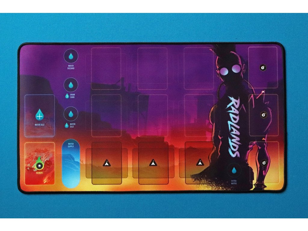 Radlands - set neoprenových podložek je set dvou herních podložek pro lepší zážitek ze hry a přehlednější uspořádání komponent na stole. Obě podložky jsou celobarevné, asymetrické a s obšitými okraji pro delší životnost.