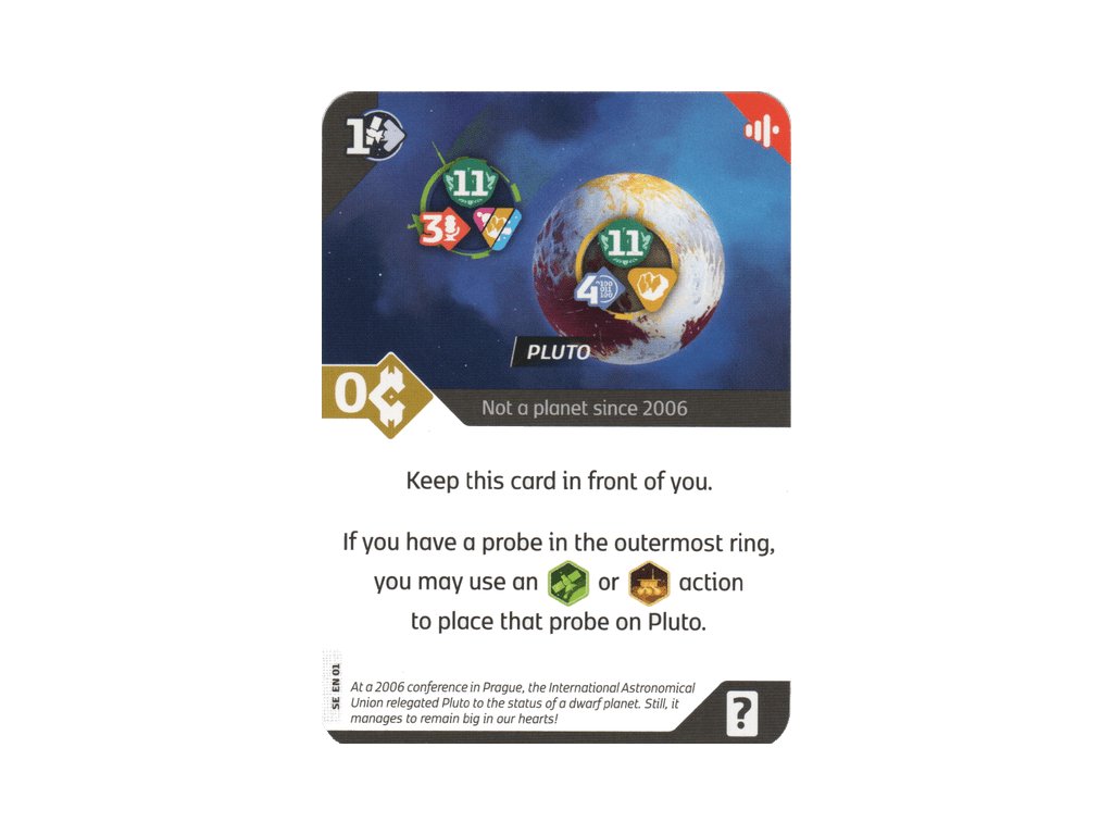 Promo karta představující Pluto. Je na ní napsáno: