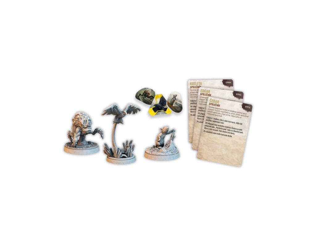 Stalker - Společníci ze Zóny přináší 3 zvířecí pomocníky. Seznamete se s vránou Edgarem, krysou Čedarem nebo zmutovaným Kotletou. Karty kontaktů z tohoto rozšíření jednoduše umístěte do své skrýše.