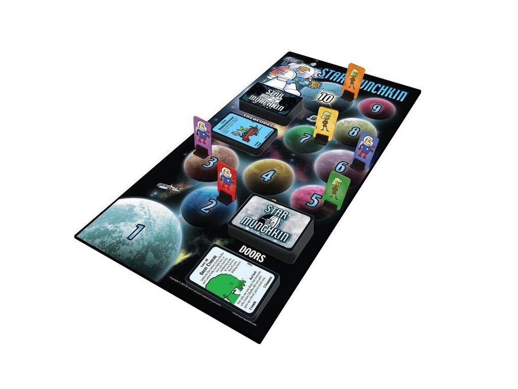 - Užijte si stejný humor a strategii jako v klasické hře Munchkin, ale v kosmickém vesmíru plném mimozemšťanů, kyborgů a mezihvězdných intrik.