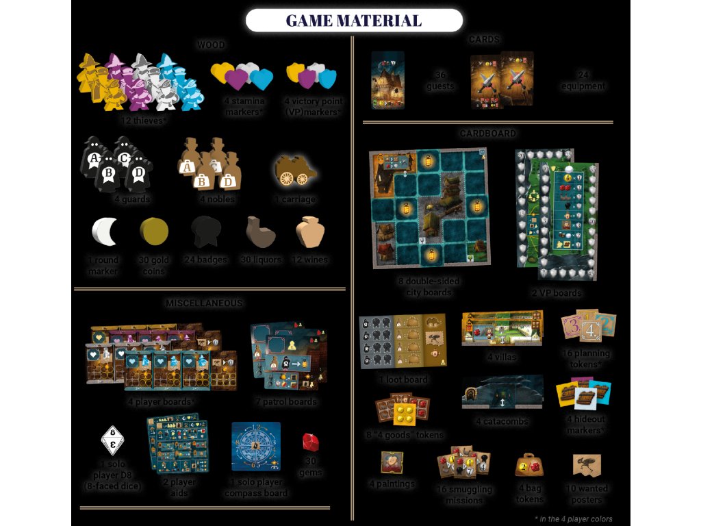 Ve hře „Thiefdom“ se vžijete do role mazaného mistra zloděje a zorganizujete ultimátní loupež ve středověkém městě Bacharach. Tato poutavá desková hra pro 1–4 hráče vás zve, abyste vedli odvážnou zlodějskou gildu, ovládli umění klamu a přelstili ostražité městské stráže. Proplétejte se složitou sítí městských ulic a soupeřte s rivalskými gildami, abyste dokázali svou převahu ve strategii a utajení.