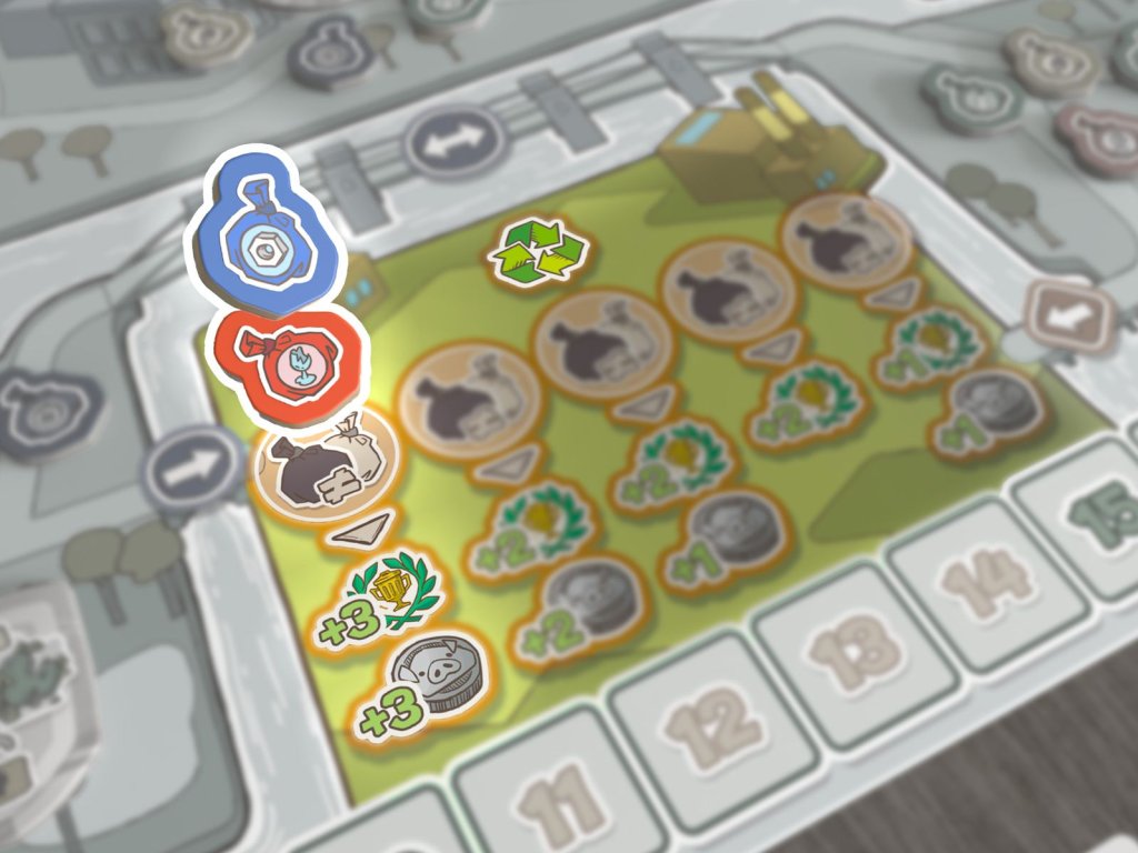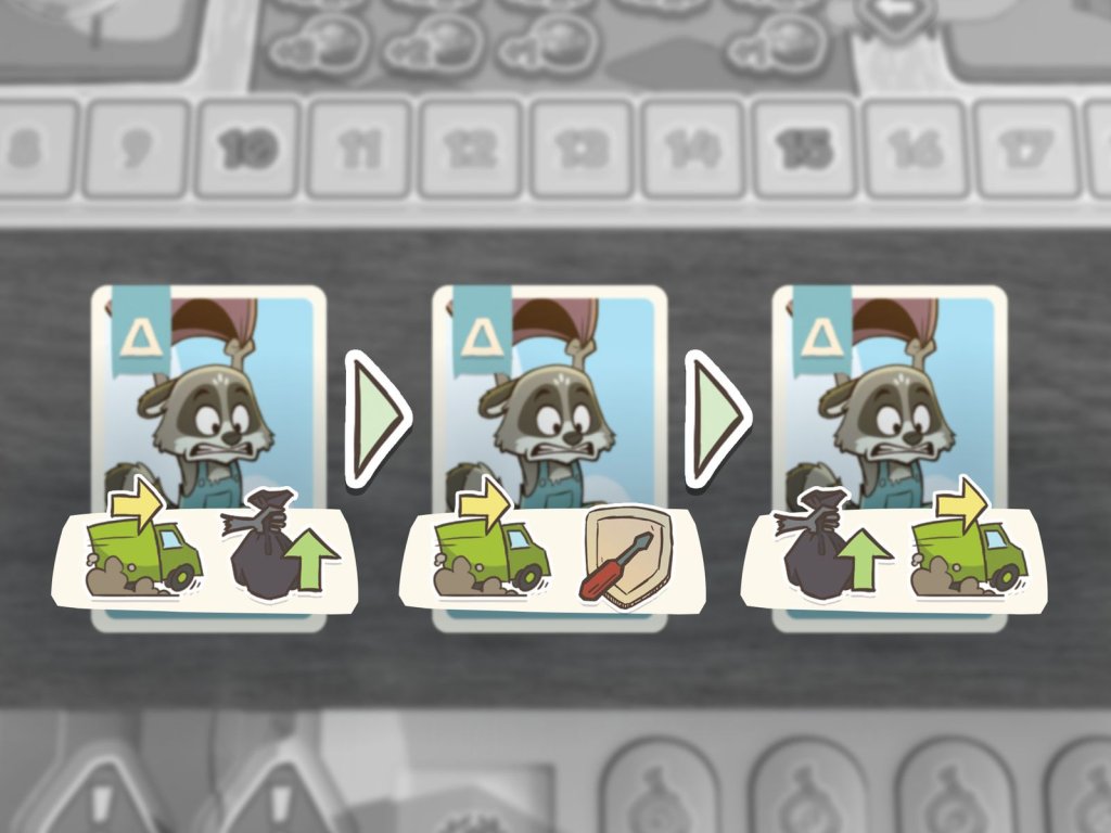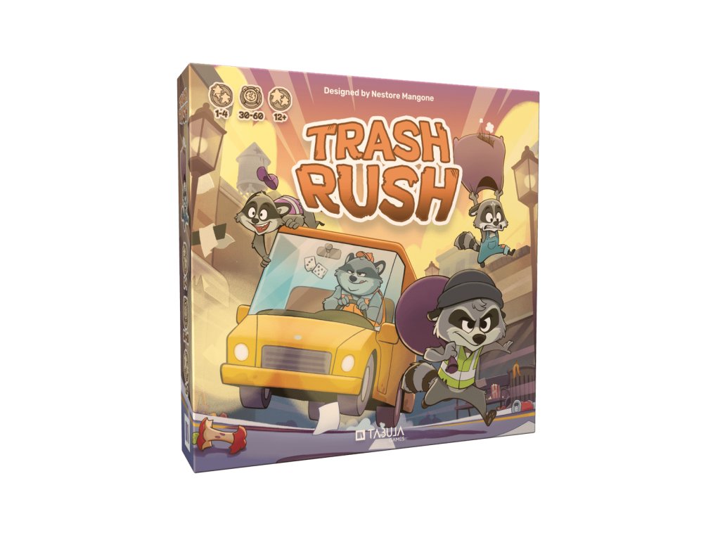 Ve hře Trash Rush hráči koordinují tým mývalů, aby uklidili město. V každém kole si hráči vyberou sekvenci akcí pro svůj tým. Řiďte své popelářské vozy po městě a nasbírejte během čtyř kol co nejvíce odpadků. Využijte odpadky na maximum: použijte je k opravě města a získejte bonusy a vítězné body. Nebo je odvezte do recyklačních závodů a získejte spoustu bodů! Po 4 kolech hra končí a vyhrává hráč s nejvyšším počtem vítězných bodů.