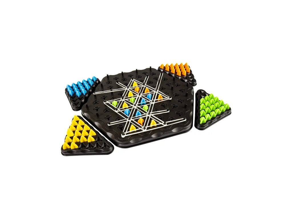 Přidávejte gumičky přes sloupky, blokujte soupeře a tvořte strategické sítě. Hra končí, když už nelze vytvořit další trojúhelník – vyhrává ten, kdo obsadí nejvíce políček.