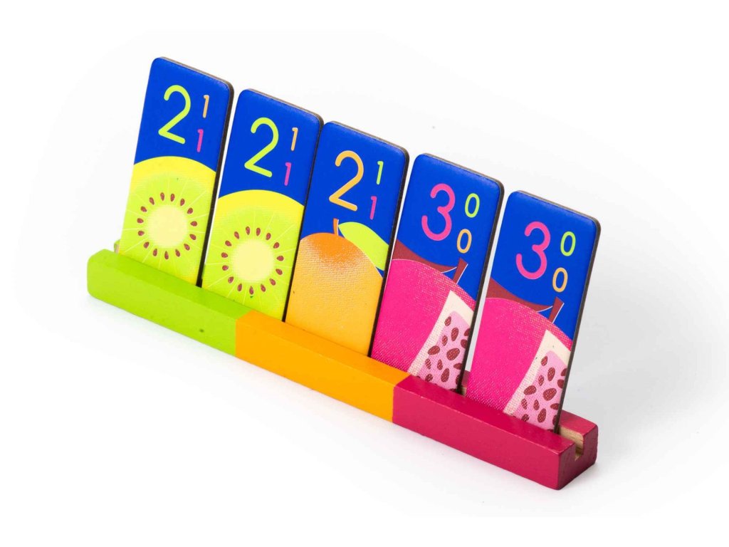 - Koupit ovoce. K tomu si vybere jeden ovocný žeton ze tří odhalených ovocných žetonů, který přidá do svého inventáře, a poté jej doplní tak, že vytáhne žeton z pytlíku.