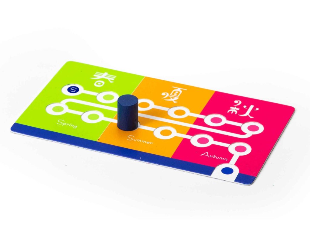 - Prodat ovoce. K tomu umístí všechny žetony ovoce, které chce prodat, před barevnou plochu svého držáku žetonů odpovídající aktuální sezóně. Počet žetonů v jeho inventáři určuje, kolik ovoce může prodat.