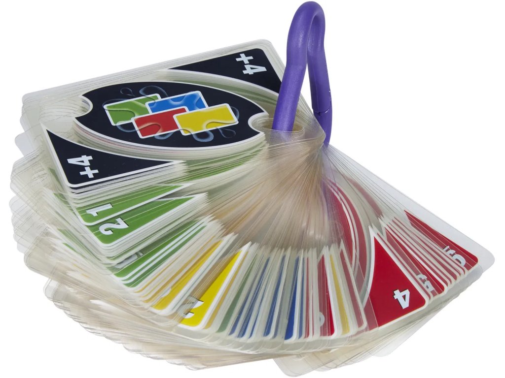 UNO H2O Na cesty – ideální společník na výlety! Vezměte si tuto voděodolnou cestovní verzi hry UNO kamkoliv s sebou! Pevné plastové karty jsou odolné vůči vodě, takže si zábavu můžete užít doma, venku, na pláži nebo v kempu. Praktická karabina udrží všechny karty pohromadě a snadno ji připnete k batohu, plážové tašce nebo kempovací výbavě.