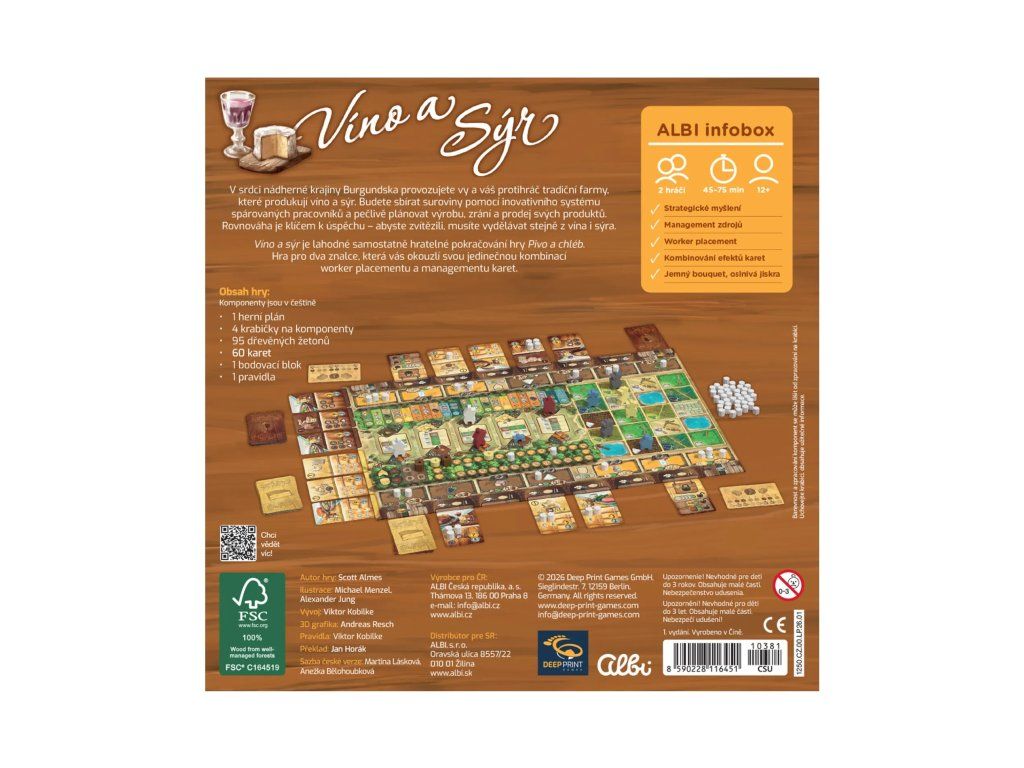 2 tradiční farmy produkují víno a sýr a každý z hráčů představuje jednu z těchto farem. Sbírejte suroviny pomocí inovativního systému spárovaných pracovníků a pečlivě plánujte výrobu, zrání a prodej svých produktů. Rovnováha je klíčem k úspěchu – abyste zvítězili, musíte vydělávat stejně z vína i sýra.
