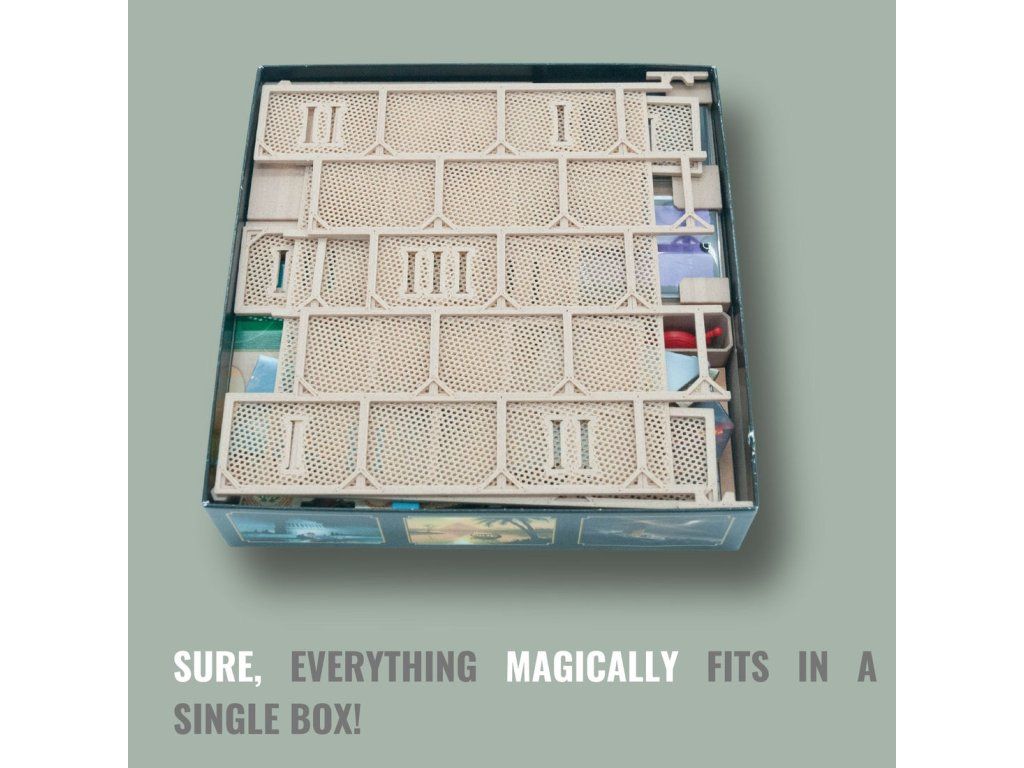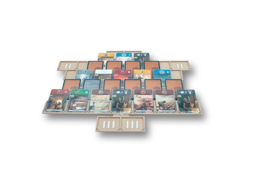 3D tištěný insert a mřížka pro deskovou hru 7 Divů světa: Duel (2015) včetně rozšíření Agora a Panteon.