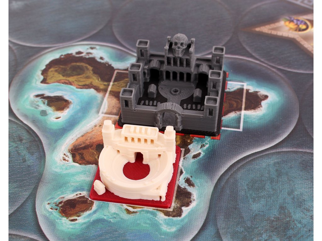 Sada detailních 3D budov pro hru Cyclades, které nahrazují původní kartonové žetony.